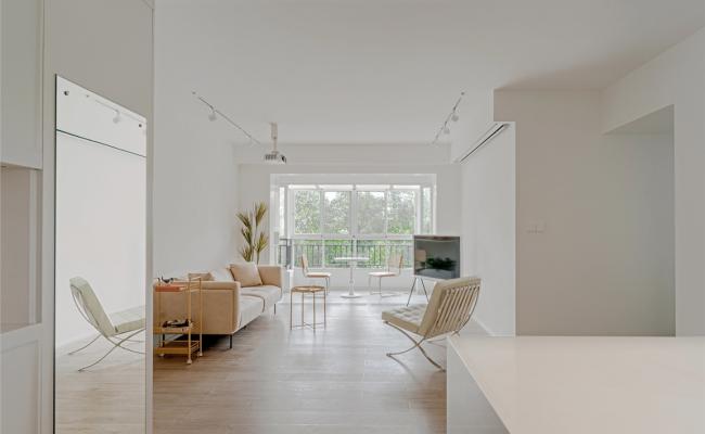 項目現場概括:項目位于海珠琶洲位置,典型的三房平層戶型,項目位于小區的內部,若長的陽臺和房間的窗戶都對著安靜悠閑的花園, 讓本該在6樓的房子或在陽臺,或在客廳,房間,過道,都能看到四季生長更換的黃色葉子的樹枝末梢。給室內添了些怡然自得的心緒。 于是我們沿用了室外的風景,去設計我們室內生活簡單舒適的生活方式和風格。