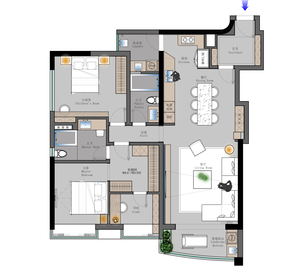 原來獨立的三房改成主臥大套房和小孩房