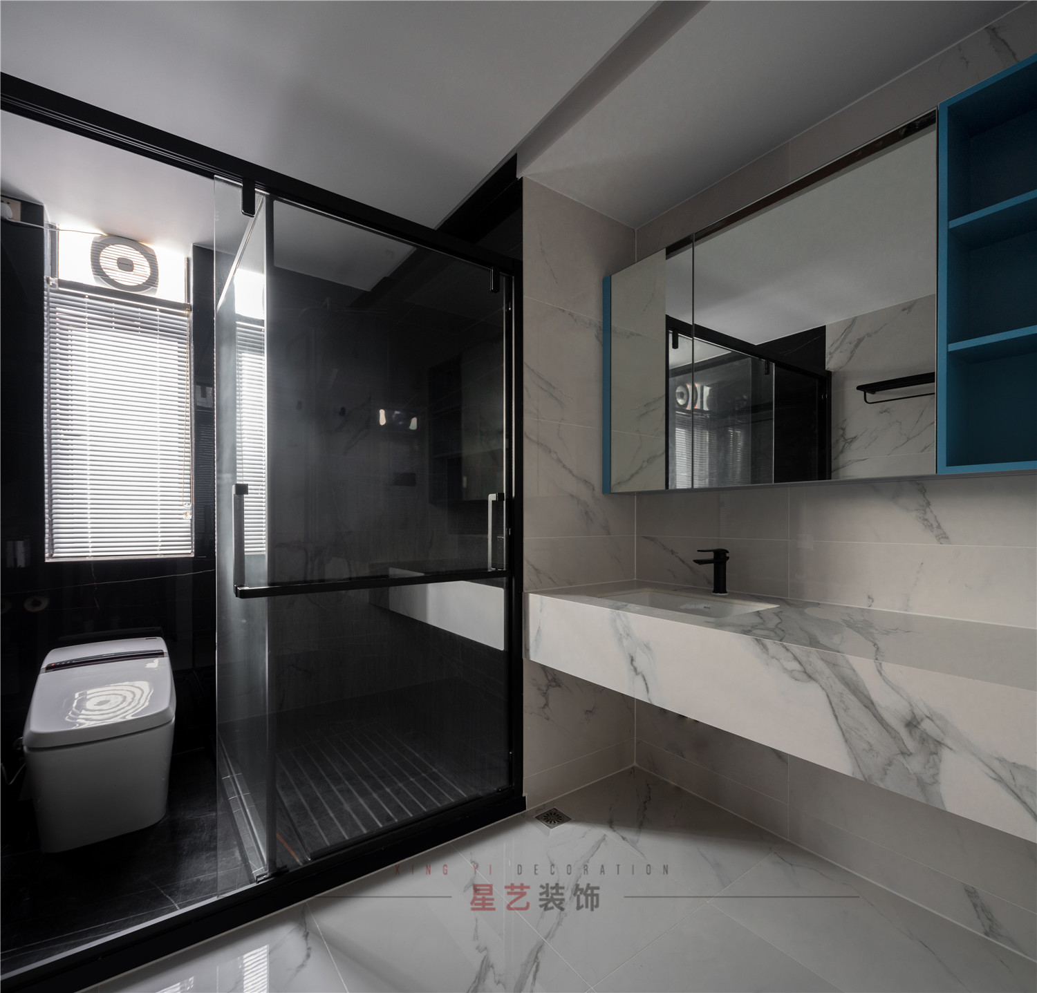 白色部分為洗漱區,大理石紋理暈染飄逸,